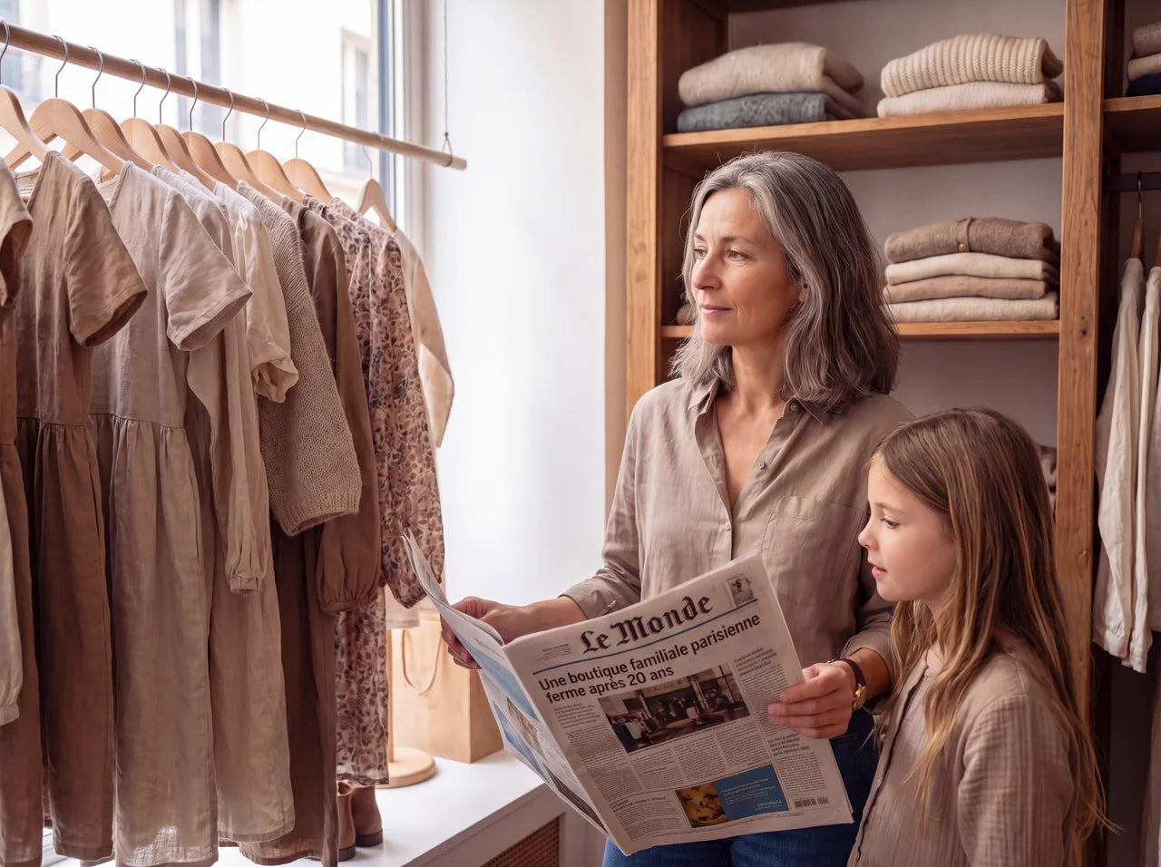 Bonjour, je suis Hélène. Depuis plus de 20 ans, je sélectionne avec soin des pièces naturelles, confortables et élégantes, pensées pour durer. Aujourd’hui, les coûts sont devenus trop élevés et je me prépare à fermer définitivement ma boutique. Cela me touche profondément que vous fassiez partie de cette histoire. Je partage encore cette aventure avec ma fille, encore très jeune, qui m’accompagne à sa manière. Merci sincèrement d’être à mes côtés. ❤️